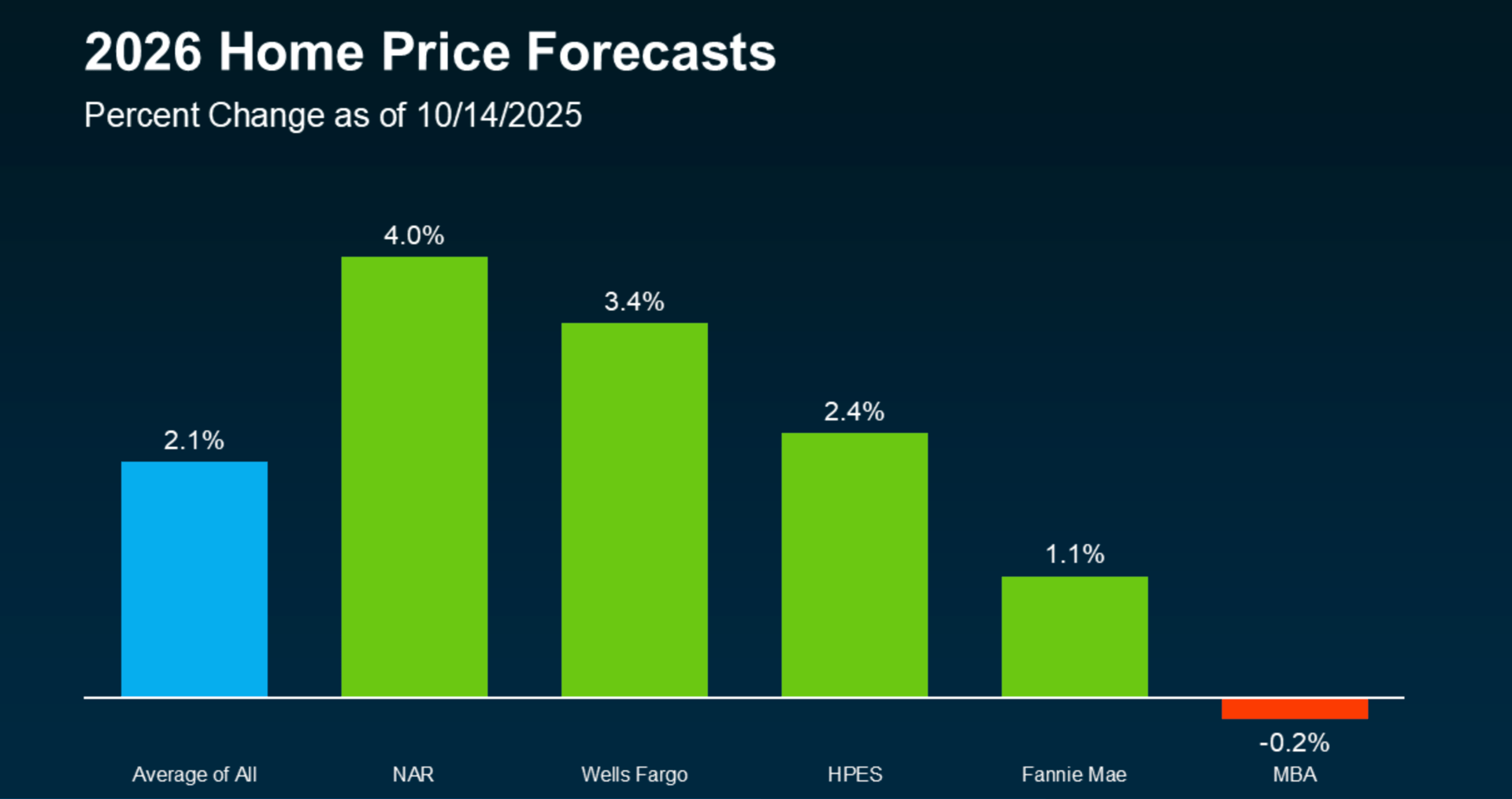 Mortgage rates remain one of the biggest factors shaping buyer activity. After peaking near 7% earlier this year, rates have started to ease, and most major housing forecasters expect that gradual decline to continue into 2026.